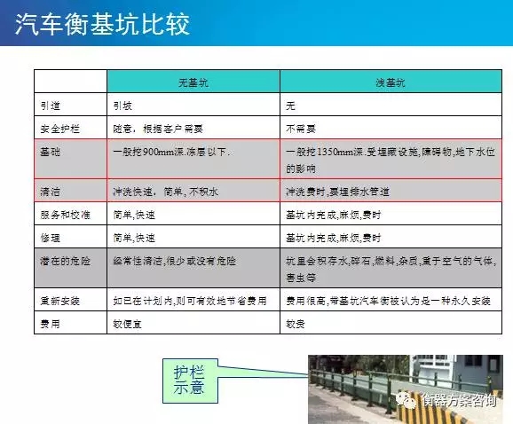 無基坑的汽車衡在高出地面安裝,可以經常性的清潔,不積水,費用比較便宜;